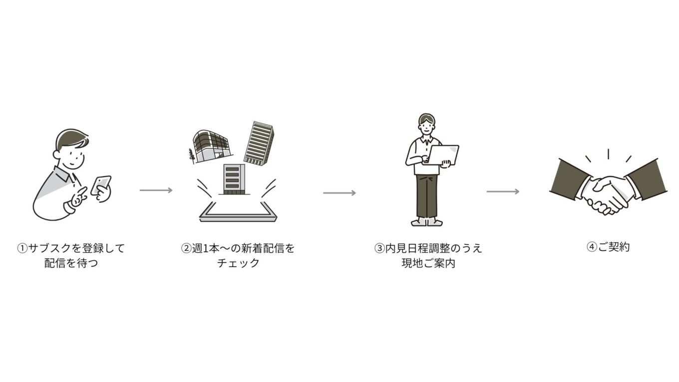 • サブスクご登録いただいた方には優先で物件のご提案をさせていただきます。ご登録いただいている旨をLINEにてメッセージをください。※物件のご提案対象は「事務所」のみとさせていただきます