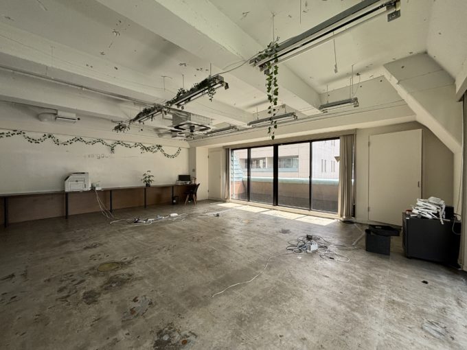 今の入居様の前に入居されていた会社様が、普通の事務所仕様からスケルトン仕様へ変更しました。