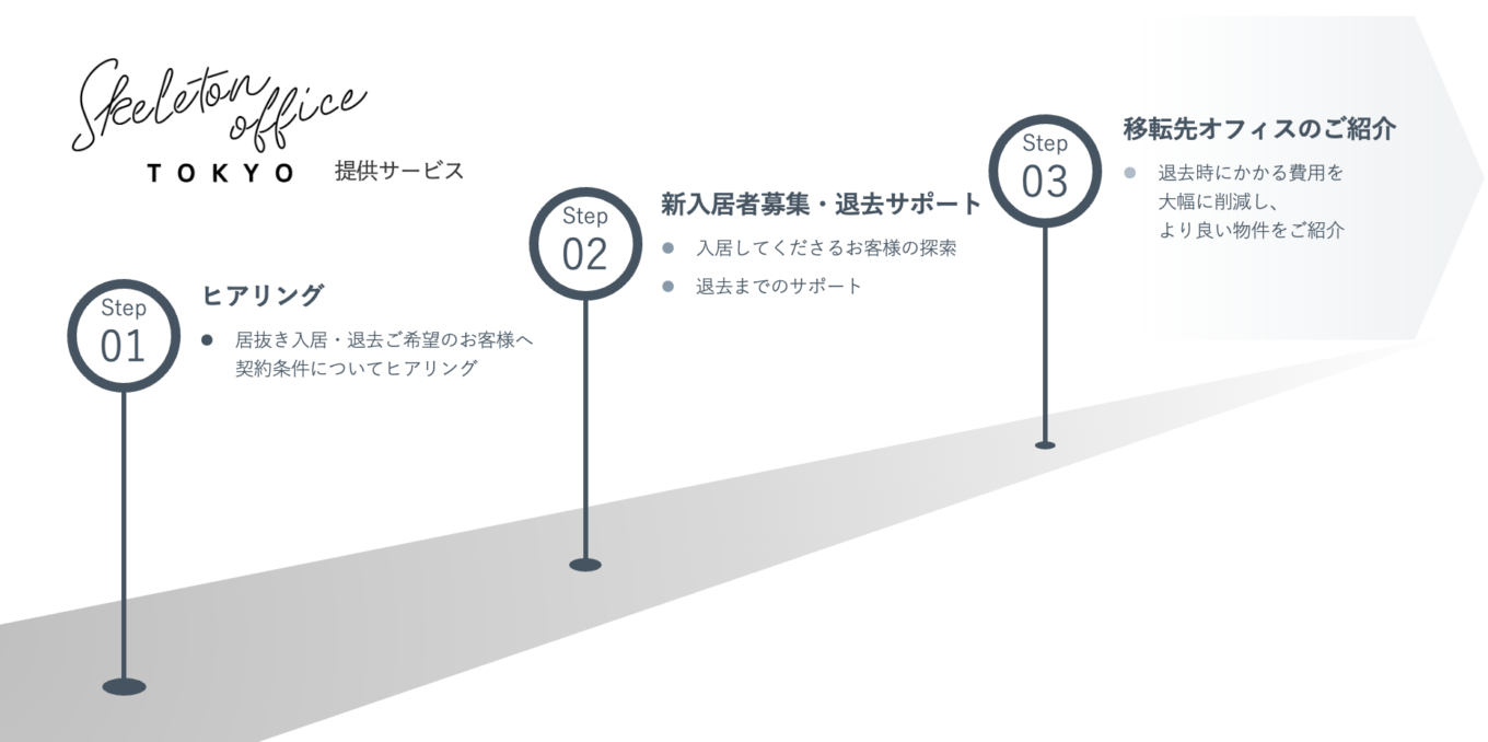 スケルトンオフィスでは、居抜きオフィス退去支援を行っております