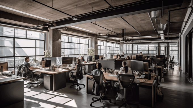 kudamon_An_stylish_and_open_office_space_with_an_open_ceiling._74d4edad-325e-4fcd-9ba0-956d33def388