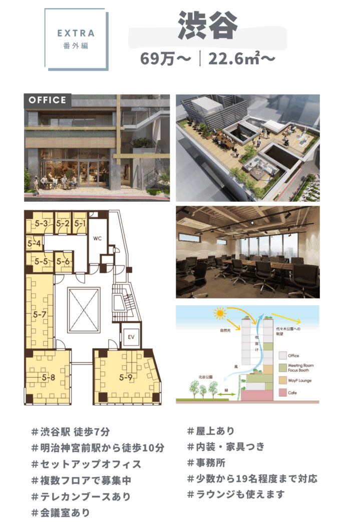 6. 神南フレキシブルオフィス|屋上付きセットアップオフィス(22.6㎡〜)