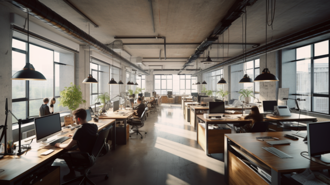 kudamon_An_stylish_and_open_office_space_with_an_open_ceiling._a1b17804-a44a-42a1-a3ec-072ac583c24a
