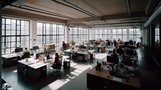 kudamon_An_stylish_and_open_office_space_with_an_open_ceiling._ae865829-834d-4038-85ab-28652dc91997
