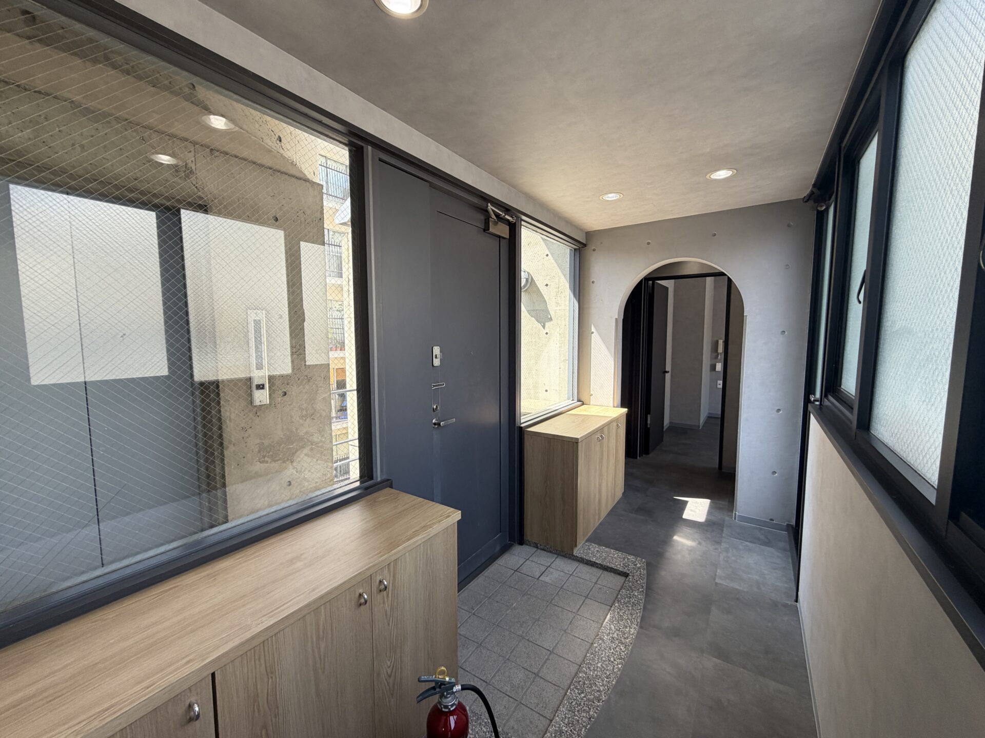 お察しの通り、入る前から期待値大だった物件です。オートロックのエントランスを通り抜け、EVで3階へ。扉を開けて入るとまず玄関が想像よりも広くてびっくり。細かなところに曲線のデザインが施されているのも素敵でした。