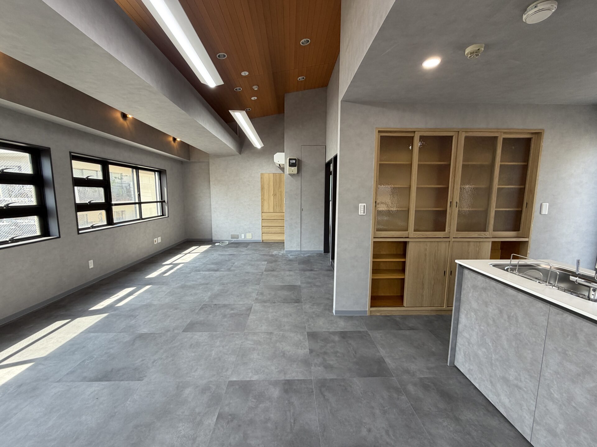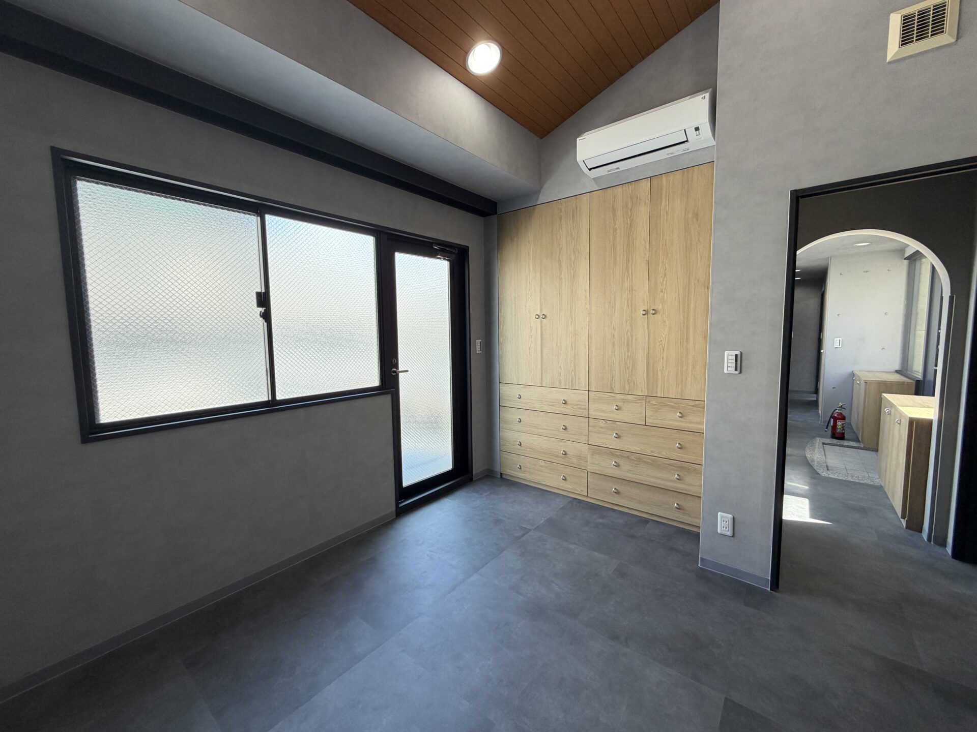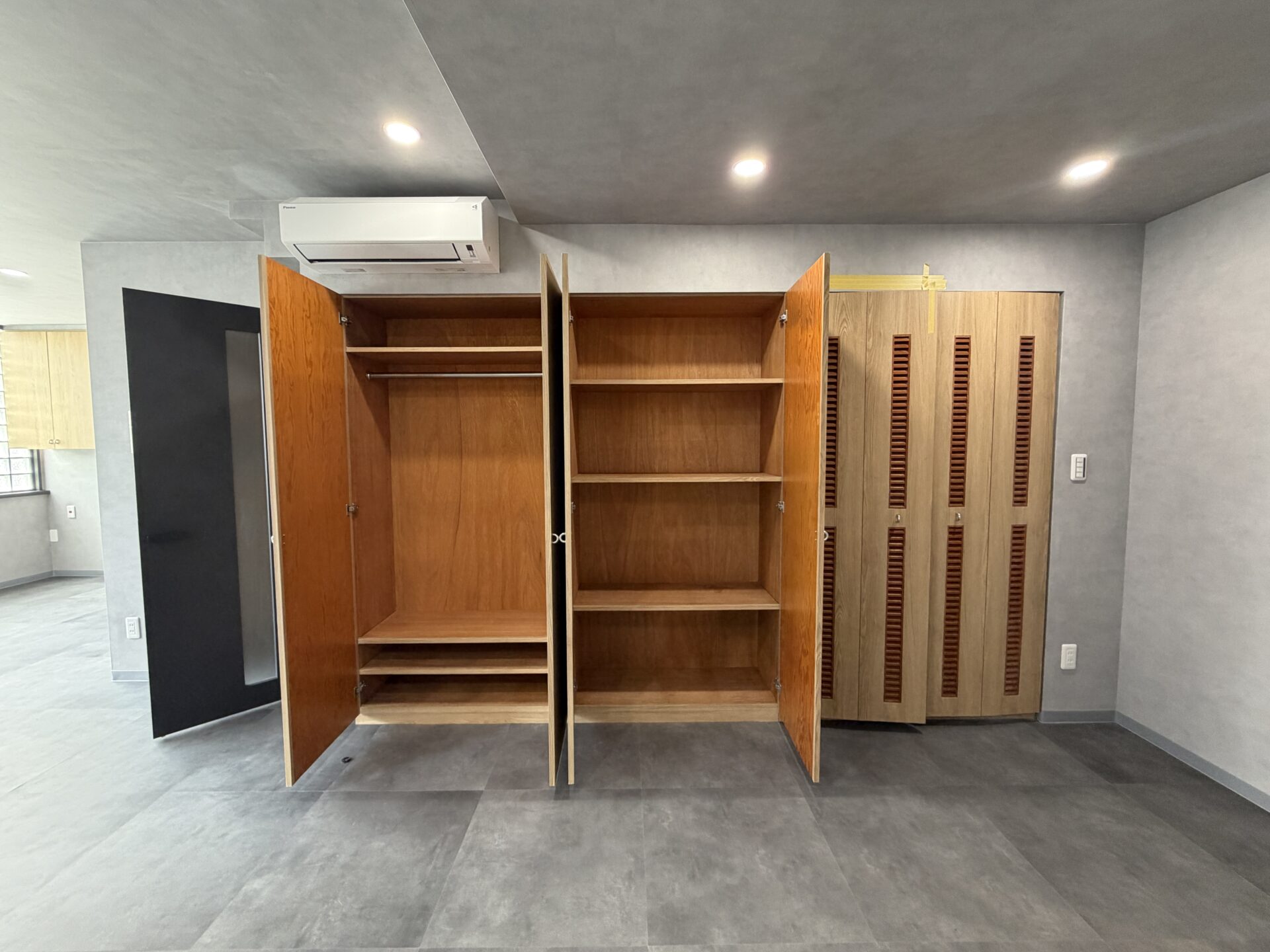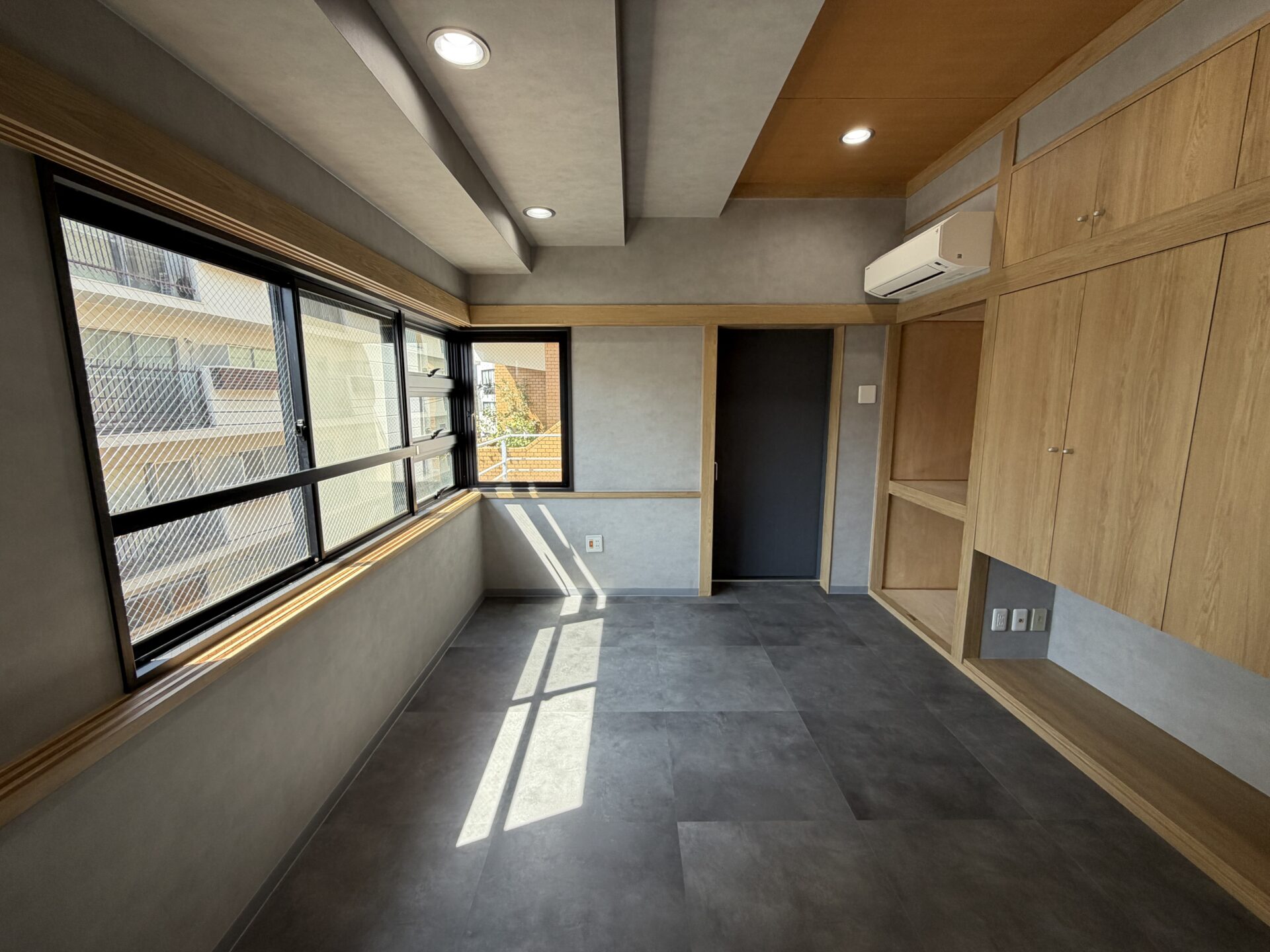今回の3階(302)と4階(401)はどちらもフルリノベーションされており、お部屋一つ一つにこだわりが。全体的にグレーのモルタル調の壁やウッドの棚やブラックの扉など、シンプルかつモダンに仕上げられています。他にないアート感のある造りに魅了されること間違いなしです。