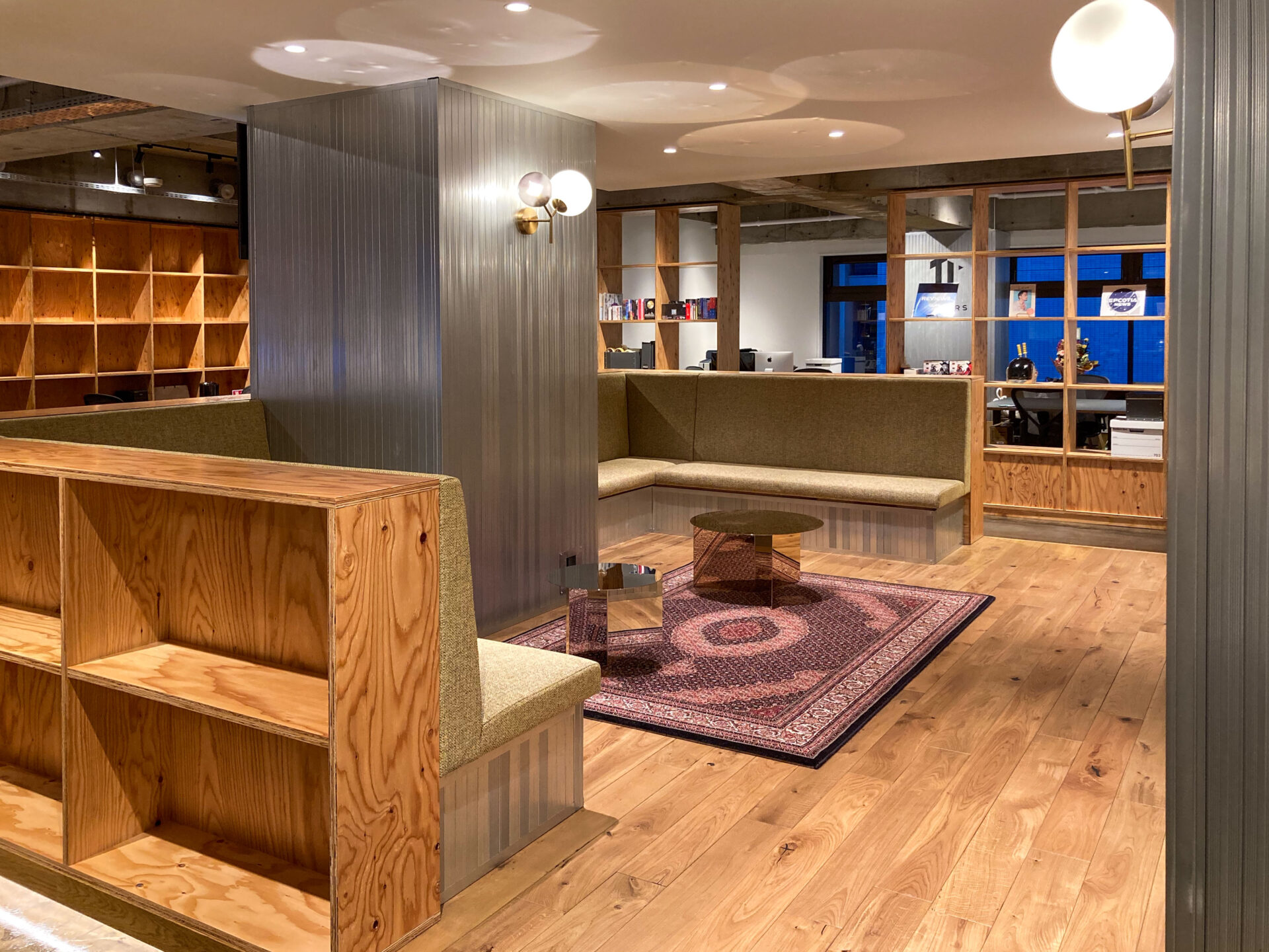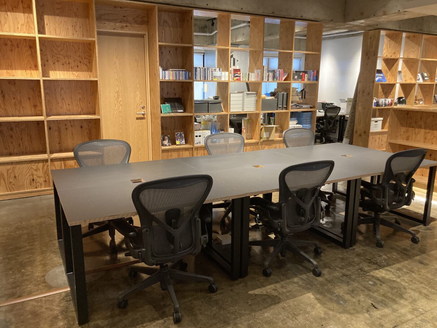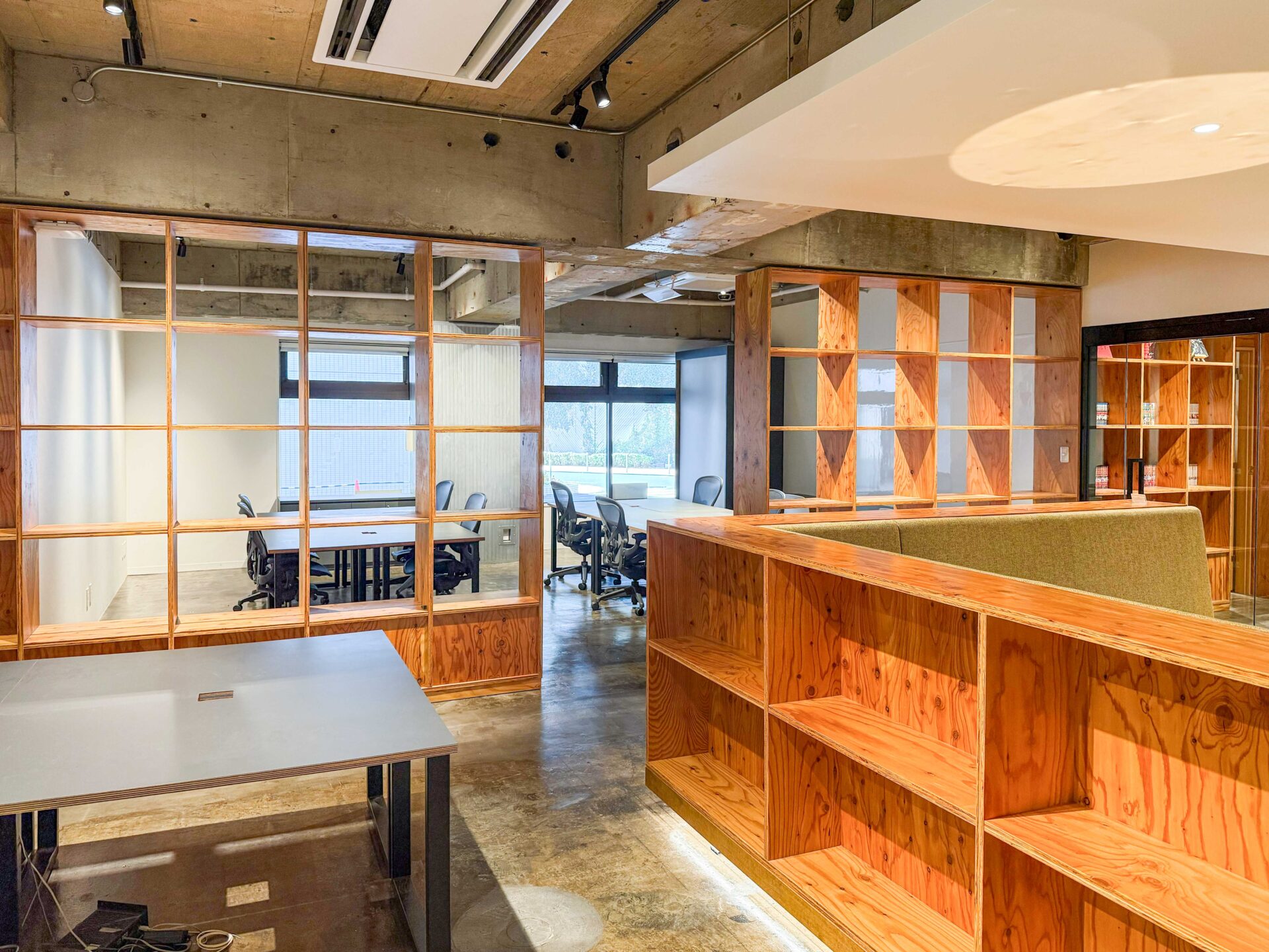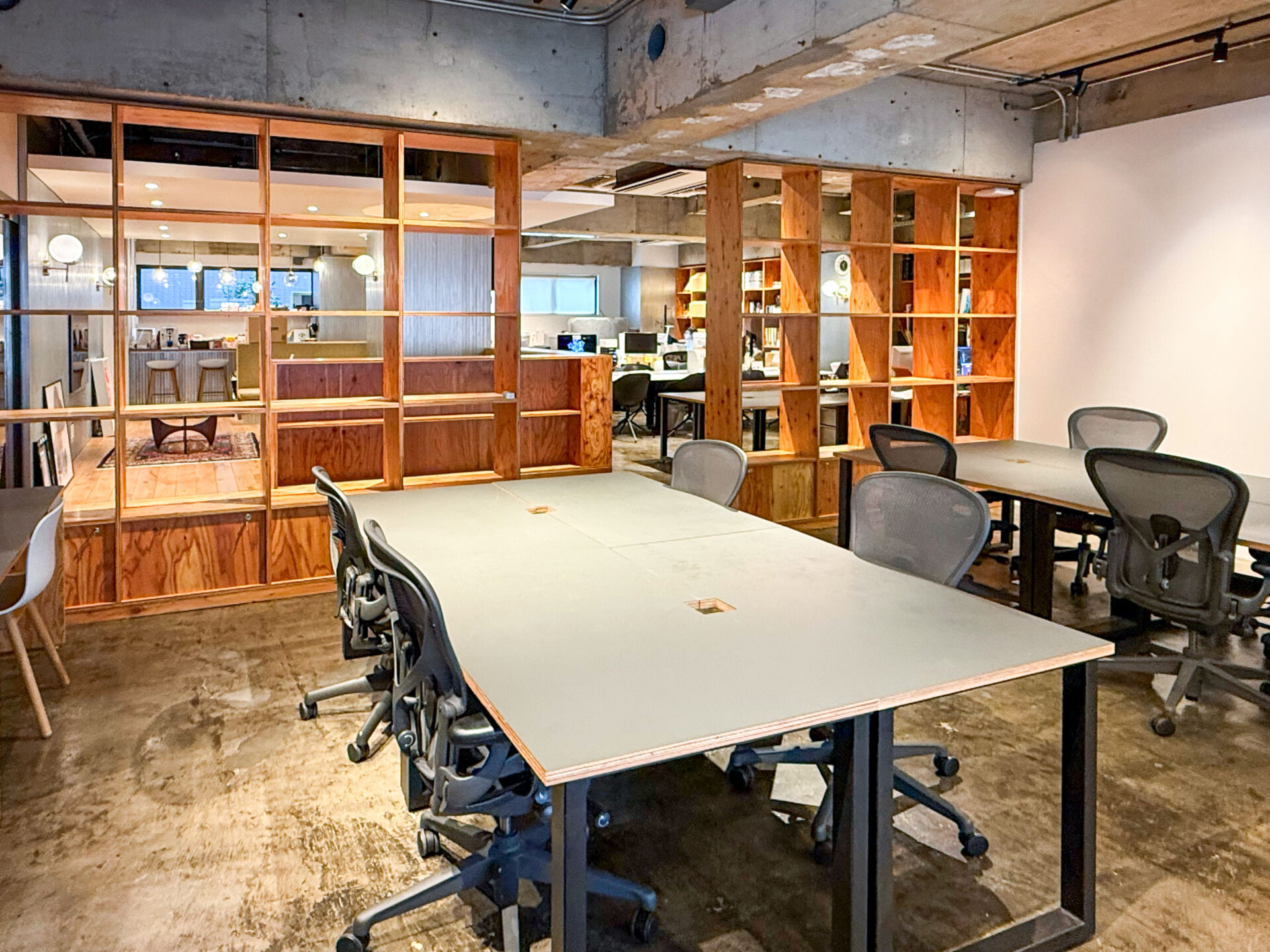 ミーティングに使えそうな個室も嬉しい2部屋付きです。棚にもなる間仕切りが、遊び心を掻き立てます。