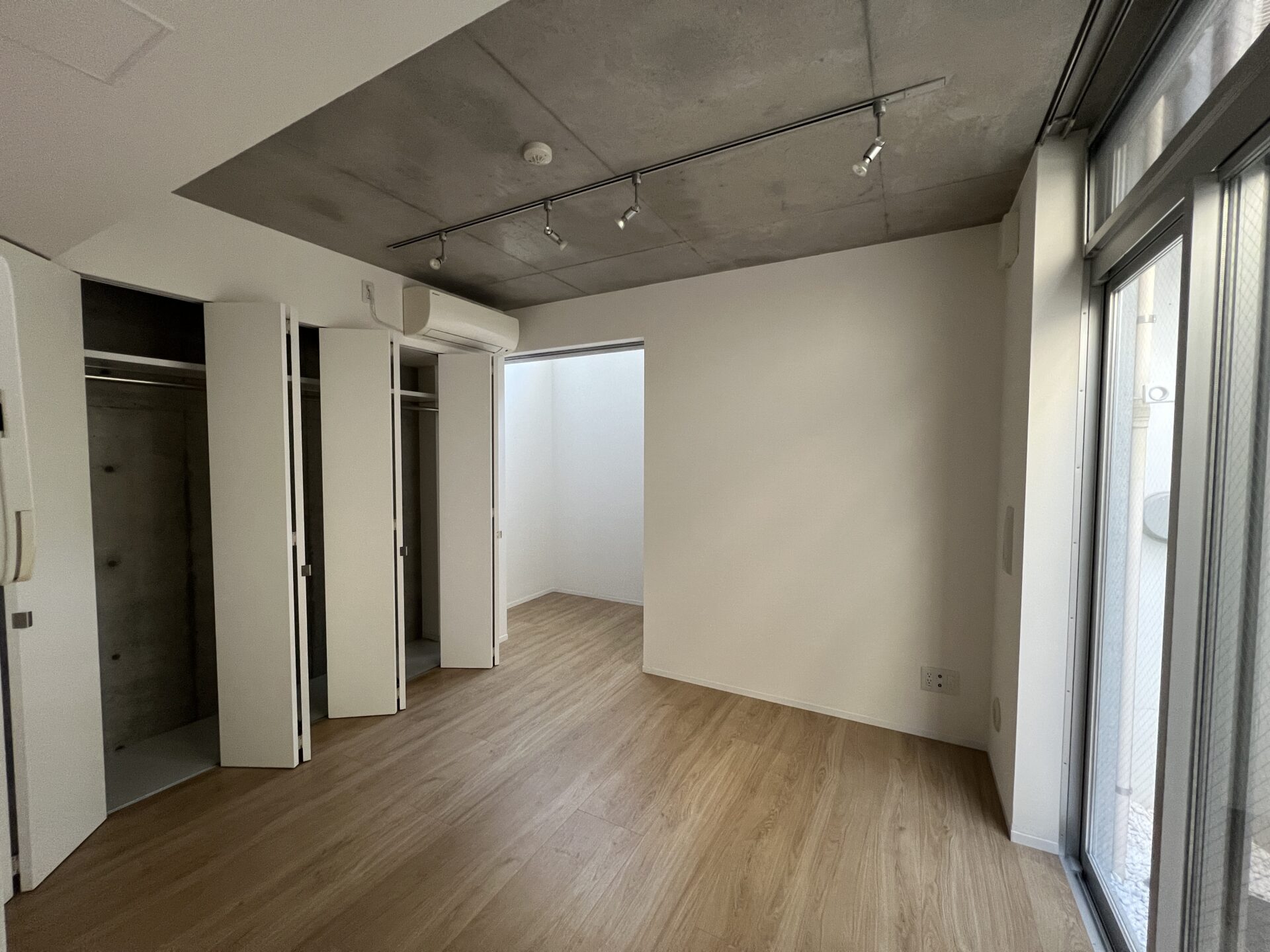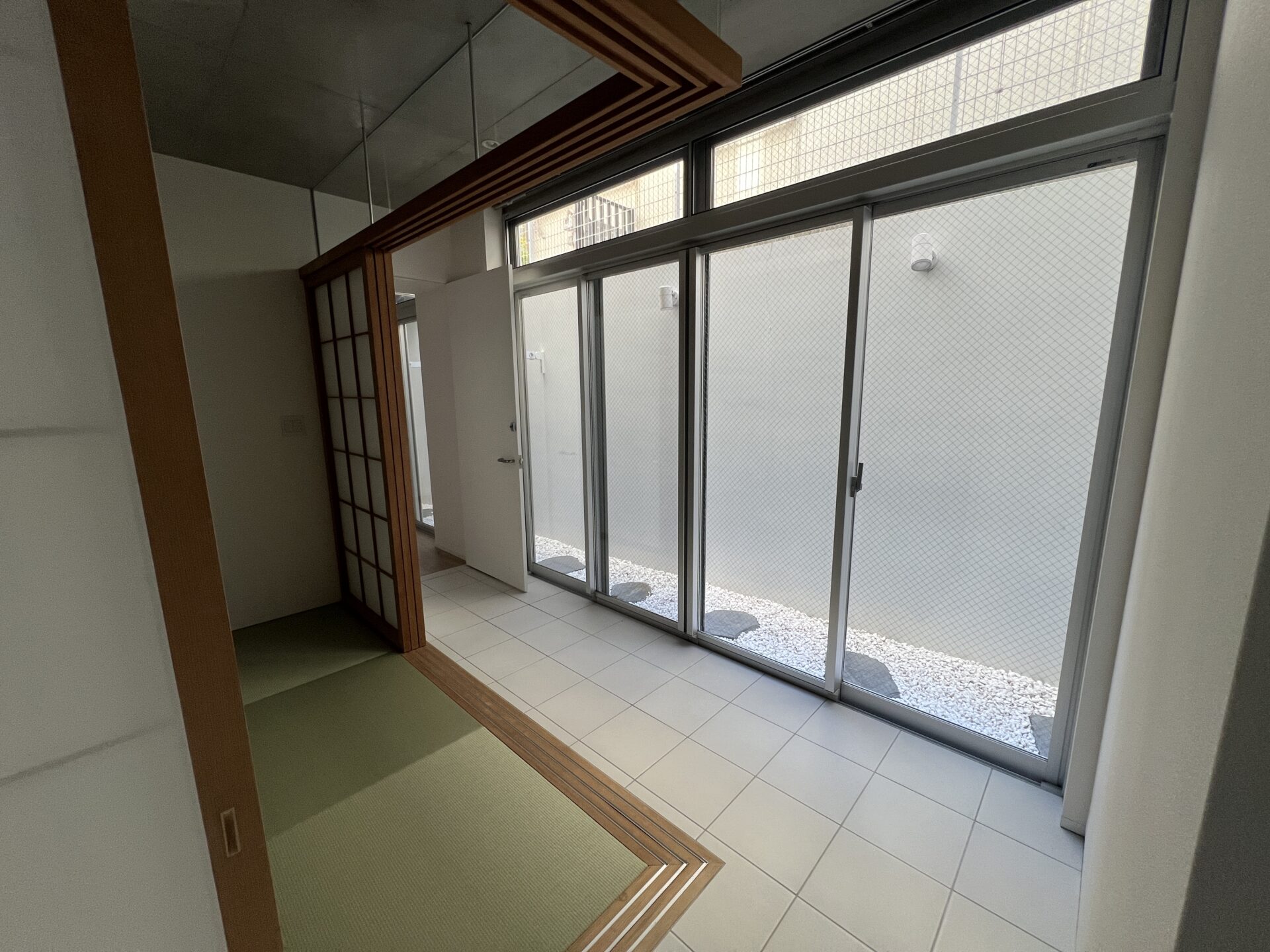 地下1階の窓の外には、白石がきれいに敷き詰められており、細部まで丁寧につくられている印象を受けました。畳の部屋があることも含め、どこか日本的な美意識を大切にされているオーナーさんなのかもしれません。物件から管理会社も近く、「何かあったらすぐ言ってくださいね」と管理担当の方が声をかけてくださったのも、地味に安心ポイント。コンクリートと各部屋の素材の掛け合わせが面白く、住居としても、事務所としても、予約制のサービス店舗としても想像が膨らむ空間です。特にサロン系の用途とは相性が良さそう。共用部もきれいに管理されており、人を迎え入れる場所として、好印象を持ってもらえそうな物件でした。