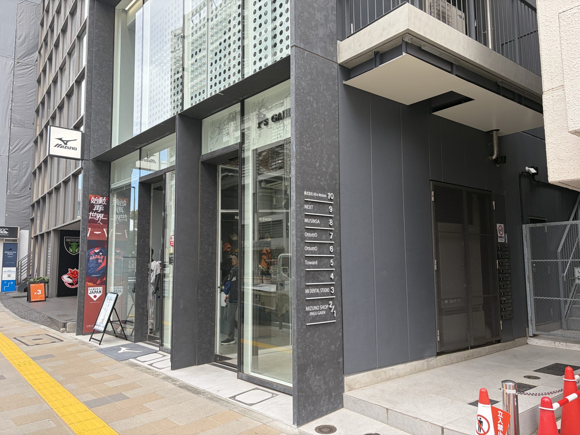 明治神宮野球場からも近いこのビル。1階にはおしゃれなベースボールショップが入ってます。