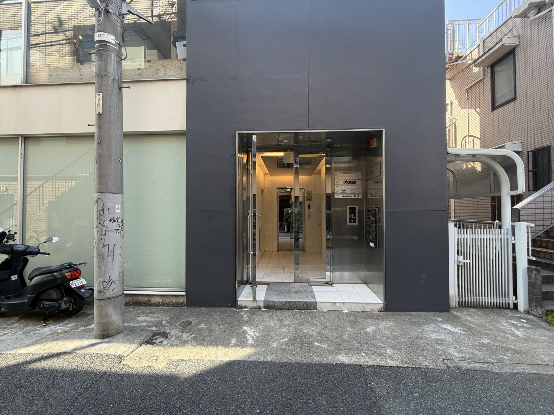 この場所に1階がパステルピンクの壁で一際目を引くキュートな雑居ビルがあります。今回ご紹介するのはここの最上階。意外と知られていない穴場のお部屋です。