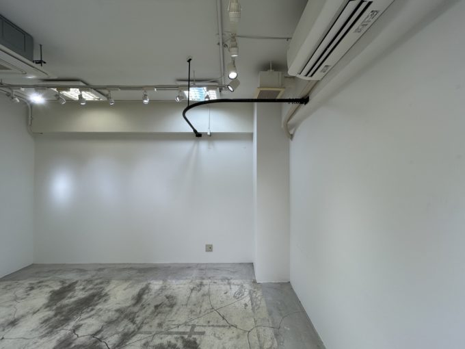 中は真っ白な壁と特徴的なコンクリート床。