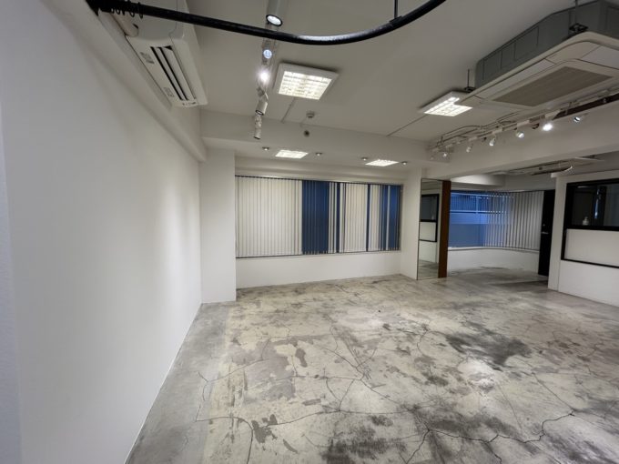 前テナント様がアパレル事務所だったようで、鏡やパーテーションレールが一部残置物として残っています。