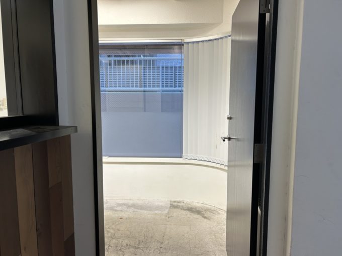 建物の入口を入ると、目の前に受付であっただろう小窓が。中から扉を閉めれば目隠しすることもできました。
