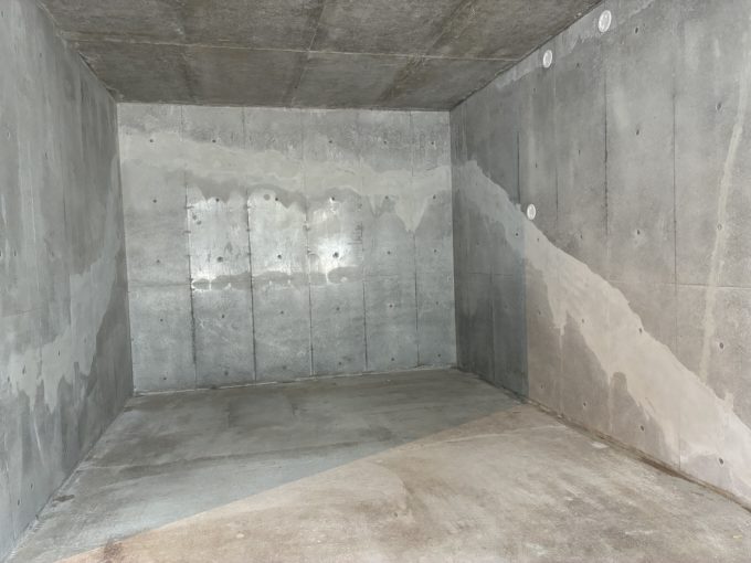 天高は2.9m。天井・壁・床が全てコンクリート打放。
