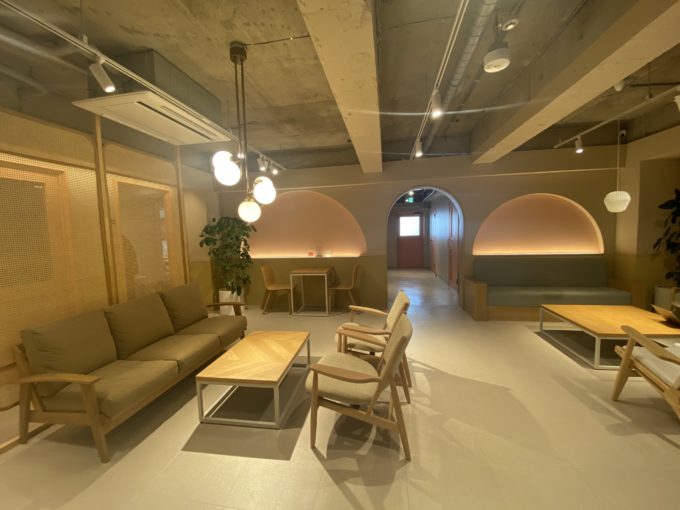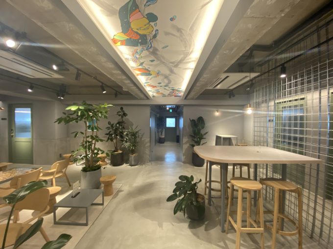 この物件のオフィス区画は4階までですが、おもしろいのはそのフロアごとにラウンジの雰囲気がまったくちがうこと。柔らかい色合いのラウンジや、アートで埋め尽くされたようなラウンジなど、、今回募集中の階のラウンジは、身も心もリフレッシュできそうなグリーンが特徴的です。ラウンジは気分転換したいときはもちろん、簡単な打ち合わせなどもここでできちゃいます。