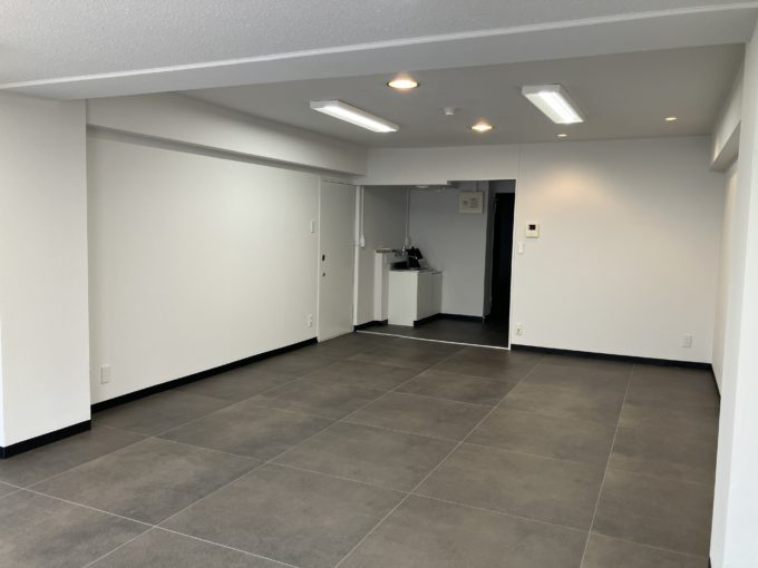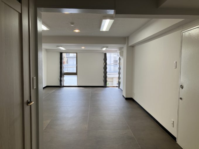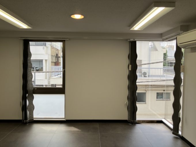 お部屋に入ると43.86㎡の程よい大きさの空間が広がっています。このぐらいの区画は5名未満のスタートアップ企業やクリエイティブチームにはちょうど良いのではないでしょうか。ただの真っ白な空間かと思いきや、所々天井にも段差がつけてあったり、光の加減で影が柔らかく入ったり、シンプルな中にもユニークなポイントも楽しめるかも。