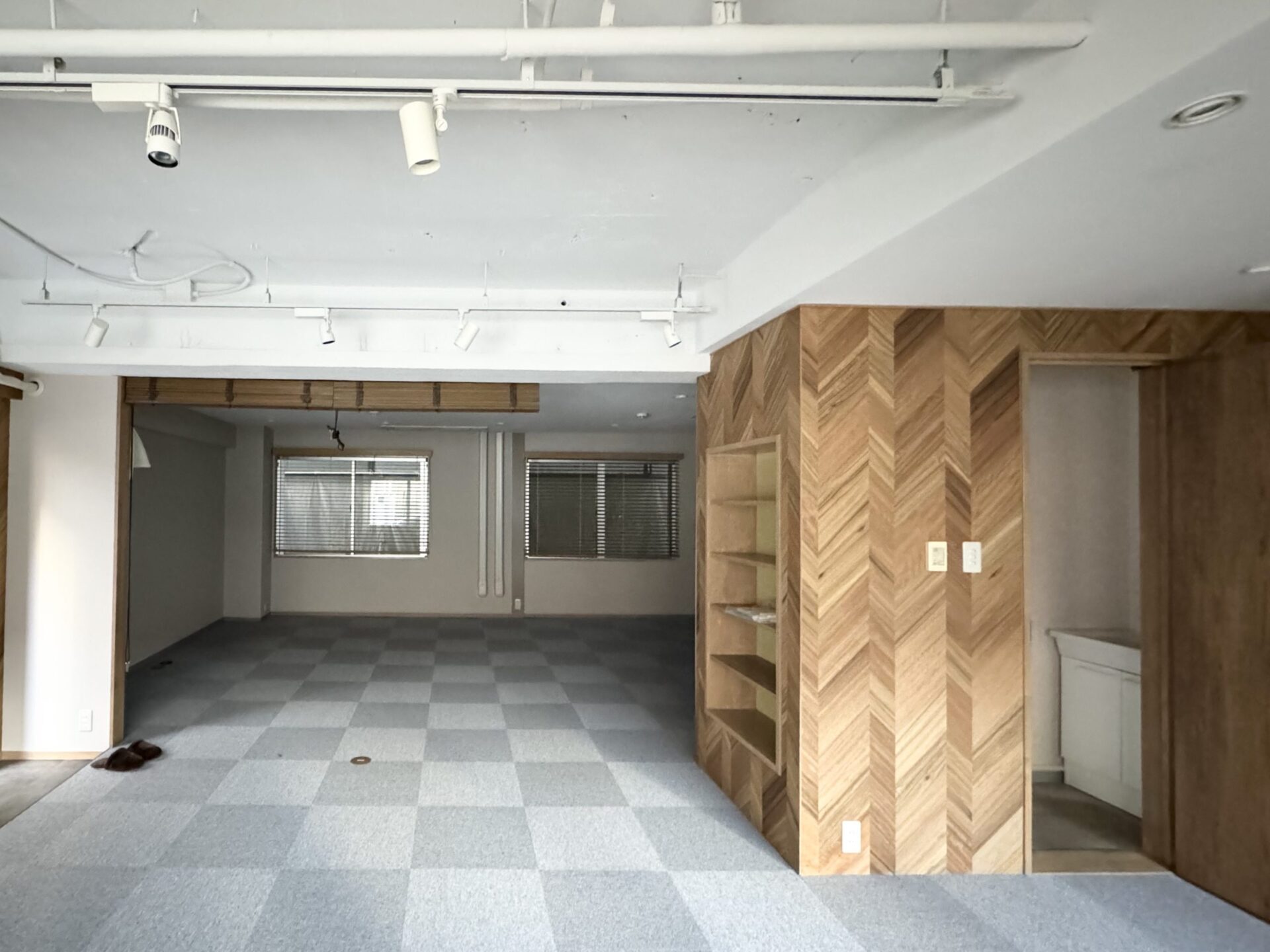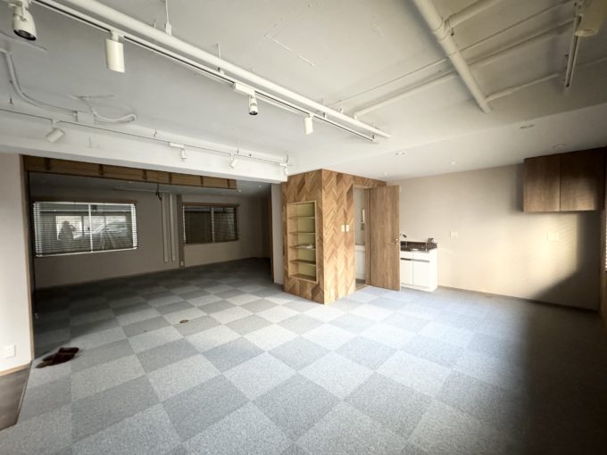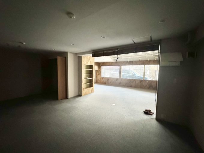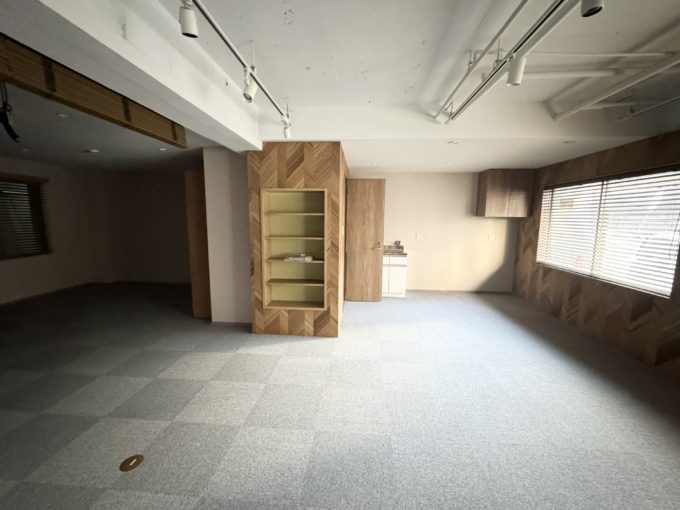 絨毯ばりのフロアに木製の収納スペースが取り付けられ、居心地の良さは抜群。