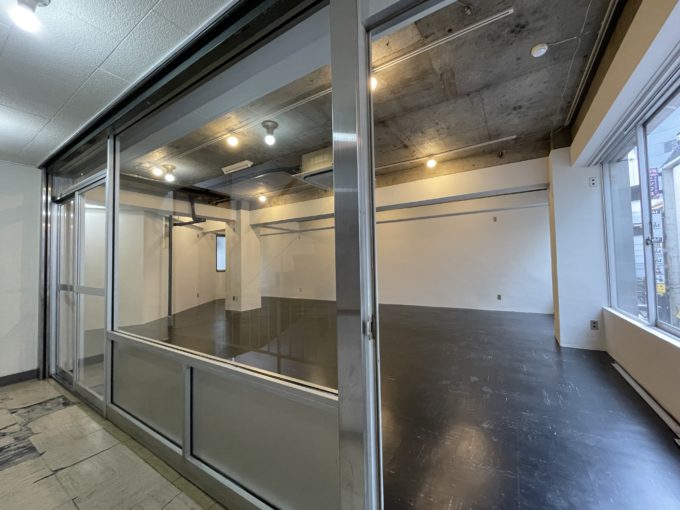 もともと古着屋さんが入居していた区画で、そのあとはトレカ専門店として営業されていたよう。窓面が大きく、入り口もガラス張りとなっていて、道玄坂1丁目アドレスのドンピシャリで店舗区画ですが、事務所・店舗として募集中。