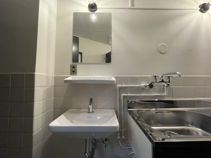 水回りは前回募集時にリニューアルされていてタイルとミニマムな陶器のシンクもマッチしています。トイレも年季は入っていますが、しっかり温水器付きトイレですよ。