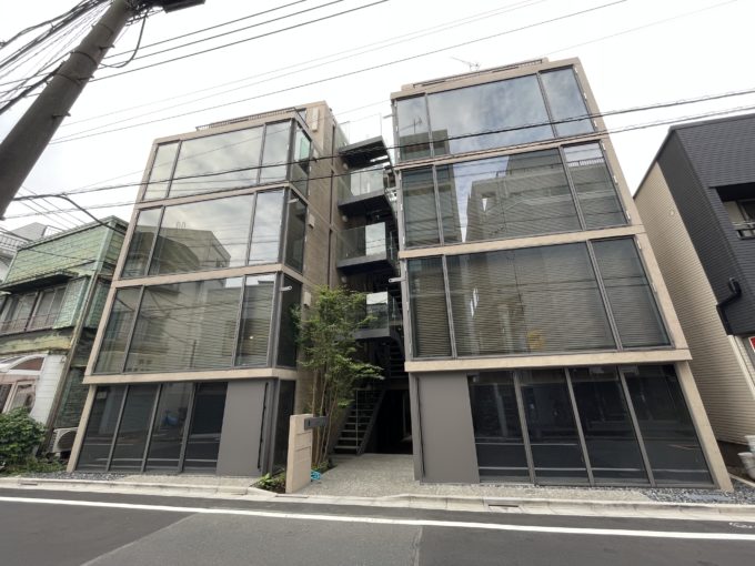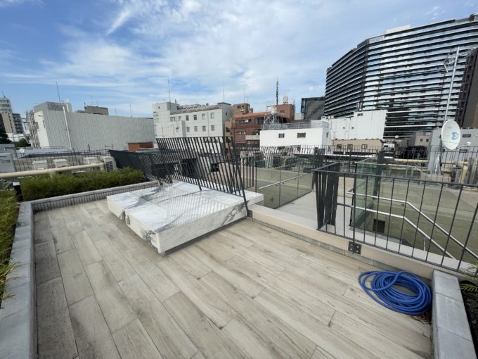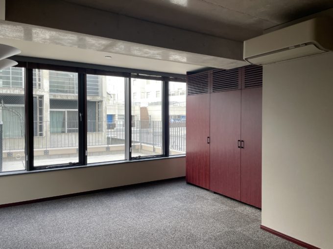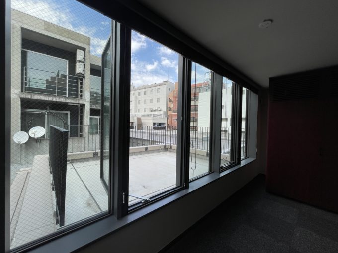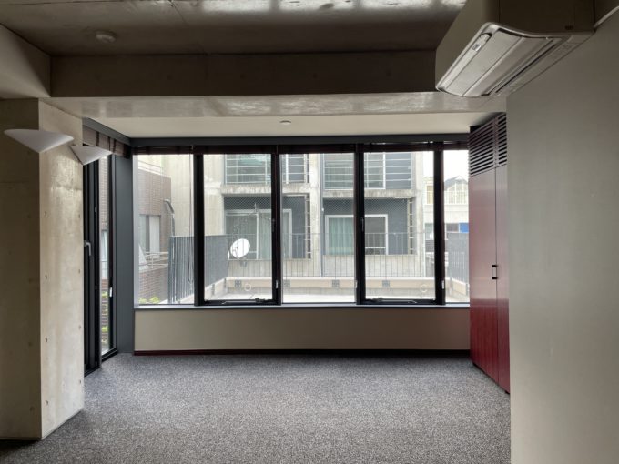 国立競技場から徒歩9分、緑の多い街並みに佇むこちらはSOHO物件(写真は403号室と共用部分、403室と同じくらいの広さ・賃料で2階から4階の各4部屋が募集中。)。広いバルコニーが特徴的だ。外に机と椅子を置いて、風を感じながら仕事する風景に憧れる。窓を開け放てば室内にも風が入ってきて心地よい。内装は全体的に高級感があるので、落ち着いた雰囲気の事務所をお探しの方におすすめしたい。お昼休憩にバルコニーで微睡みたいです。