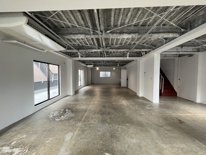 オフィスやSOHOとして使用するのが良さそう。白い壁とコンクリ剥き出しが良い塩梅で、これぞクリエイティブ。こういう空間を撮影していると、ワクワク出来て嬉しい。そしてなんとこのOMB KITASANDOビル、ビル名を変更出来るそう。1棟貸しのネイミングライツ