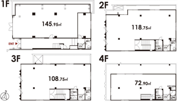 ※写真1-2枚目 1階、3枚目 2階、4枚目 3階、5枚目 4階
