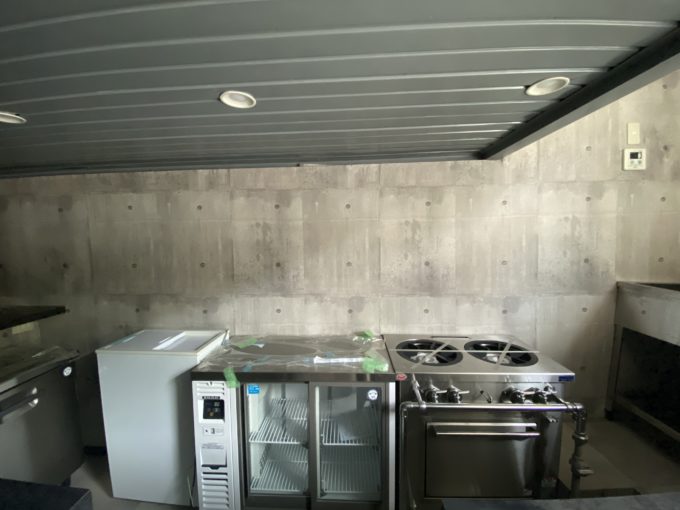 右側に入るとそちらは飲食居抜き。キッチン、冷蔵庫も付いているためすぐにでもお店をオープンできそう。