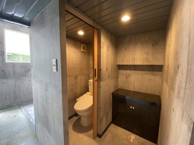 左側はトイレと半個室空間が3つ。その入り口側でレジを設備してもよさそうです。