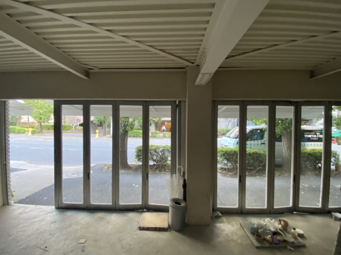 歩道側はオープンテラスのようになっており、全面開けられます。こういったのを見ると、どことなくヨーロッパのカフェを彷彿とさせられます。ただ、すぐが歩道のため、実際にテラス席を用意するのは難しいかもしれません。