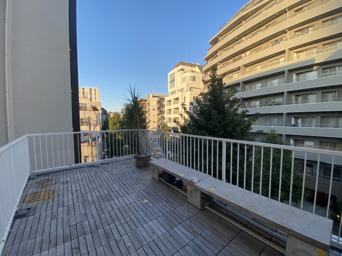 よいしょよいしょと4階を越えていけば、なんと屋上テラススペースが。ウッドデッキで、開放感抜群です。