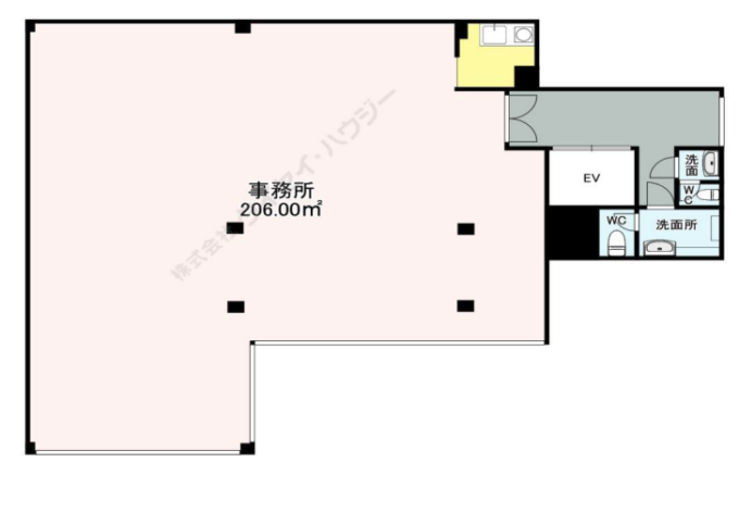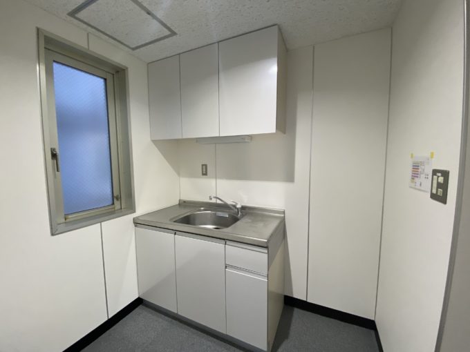 トイレは共用部に男女別でありますが、ワンフロア1テナントなので専有的に使えます。給湯室はお部屋の中にあるのも嬉しいポイント。