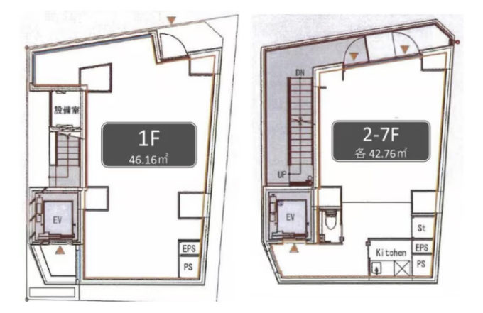 1枚目:7階 2枚目:1階 3・4枚目:2-5階 5・6枚目:6-7階