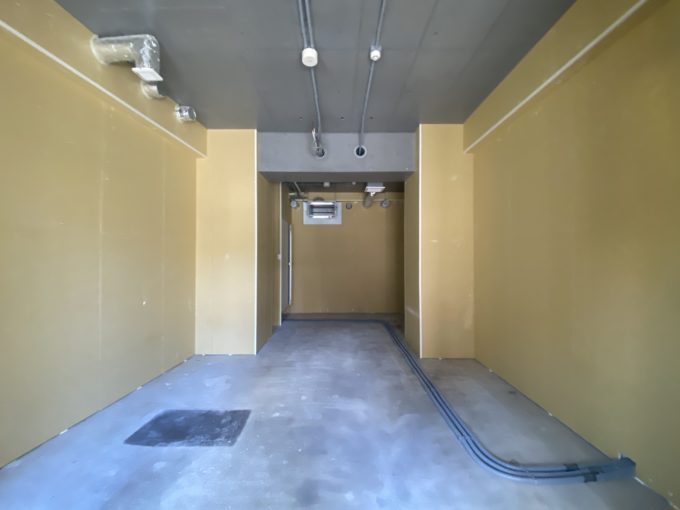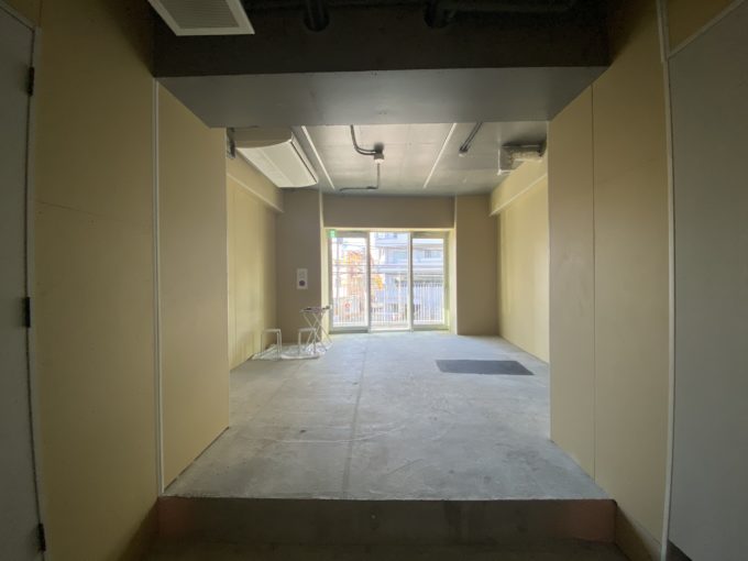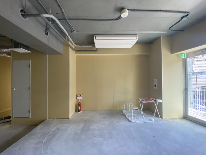 セキュリティのしっかりしたエレベーターを使って登った先の2-5階は、エアコン設置済みでした。床はお部屋の半分は張られていない状態。