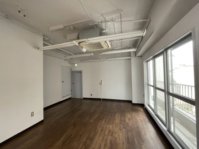広告会社さんが入っていた区画です。もともと住居だったというこちらのビル。専有部へのドアが美術館みたいな木彫りのドアで一発くらいました。こういう仕様だそうです、気になる方は内見の際のお楽しみの1つにしてください。