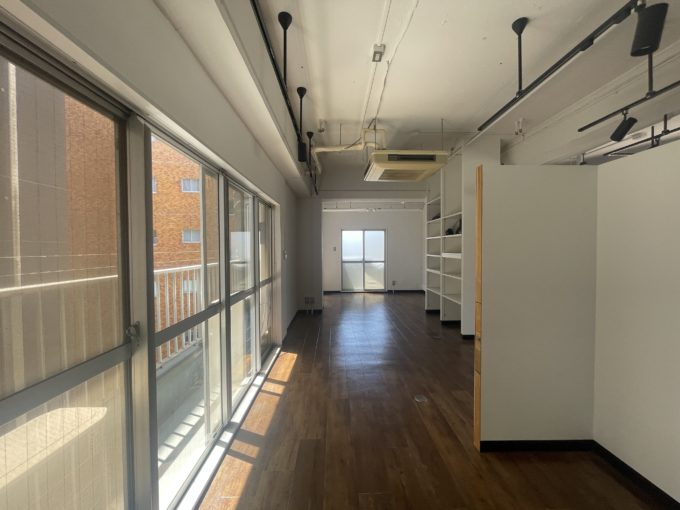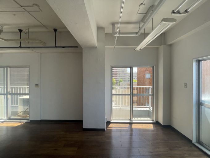 ちなみに同じサイズで7階も募集中です。こちらは一般的な事務所仕様。こちらのほうが住居の名残があり、お風呂スペースがまるっと空間になっていたりアーチのドアがかわいいです。合わせて借りていただくのもありです。
