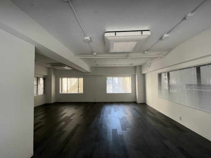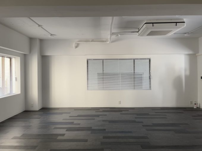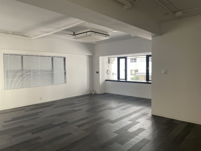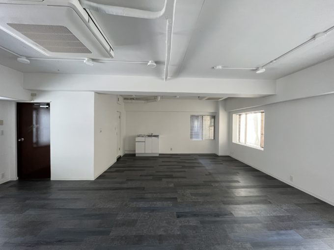 この物件は事務所としての活用にぴったりです。以前はアパレル事務所兼在庫置き場として使用されていたようです。天井高が2.5mと高くは無い設計のため、スタジオよりかは事務所向きです。