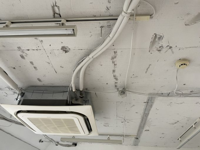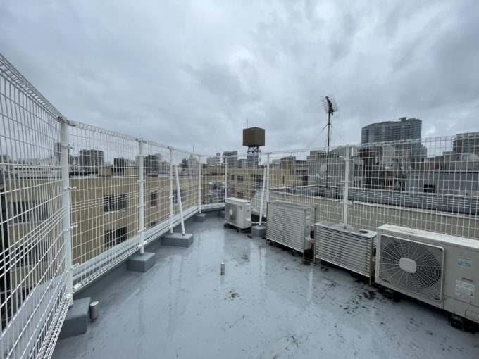 室内同様階段を境にして2つの屋上スペースがありました。もともとはオーナーの住居だったようで、ここで洗濯を干していたんだとか。なんじゃそれ、最高すぎる。またキッチンがあったり、天高が高くはなかったりと、住居仕様の名残を感じます。図面(間取り)も変だし、まさに「変な家」ですね。(褒めてます)