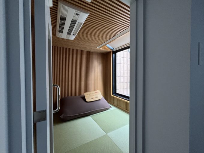 ちょっとした空き空間を、和室の休憩スペースにしたり、テレカンブースにしたりと抜かりないです。