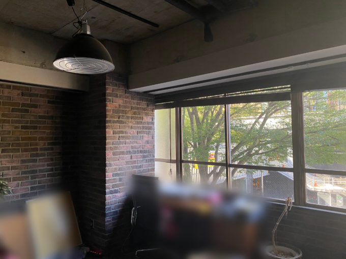 A区画は明治通り側、B区画はキャットストリート側にあり、それぞれ道路側に腰高の位置の窓があります。A側は明治通りなのでそれなりに車の音は聞こえてきますが、3Fのビューは木の緑があって落ち着きます。B側は比較的落ち着いていて、同じビルとは思えないほど静かな物腰。