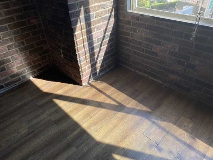 床は共通でフローリング。照明を消すと、イギリスのアパートの一角みたいな雰囲気が漂っていてだいぶ渋いです。