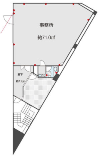 エントランスからエレベーターに乗って5階まで。6階のボタンはなく、5階で降りて階段を登って専有部へ行きます。最上階までエレベーターがないパターンのビルはたまにありますが、秘密基地感あって期待が膨らみます。