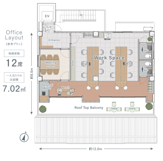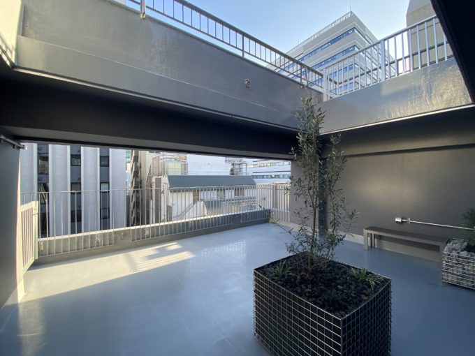 実はさらに上階にもルーフトップバルコニーがあって、そちらは全テナント様がご利用になられます。