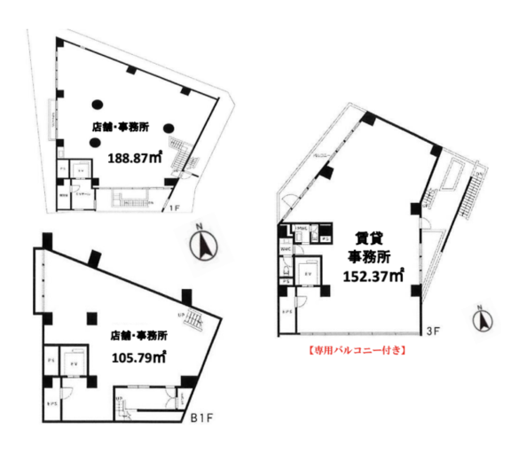 そんな物件の1階+地下1階のメゾネットフロアである店舗区画と、2階から4階までの事務所区画が募集中です。