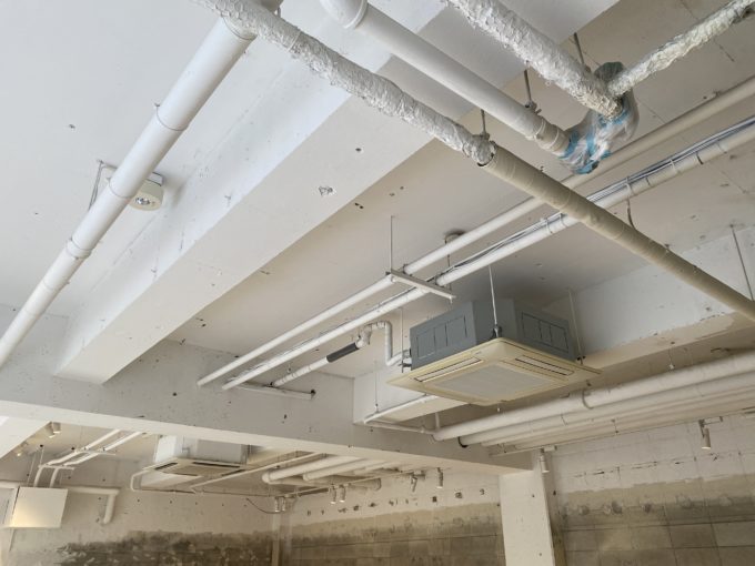 照明は白いライティングレールがついており、むき出しのエアコンやパイプと色が見事にマッチして、統一感が感じられます。