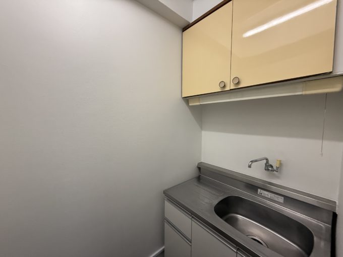 給湯室と男女別トイレはエレベーターを降りて左側にあります。