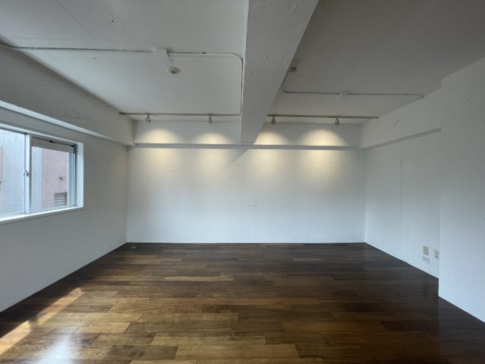 人気のスカイビルシリーズの一つ。室内はおしゃれにリノベーションされているデザイナーズ物件。綺麗に施工された壁より、このぼこぼこした感じにときめく人も少なくないはず。白い壁に加え南向きのため日が入るとパッと明るくなる。水回りは隠れているため、オフィスとしては非常に綺麗でまとまった空間だ。