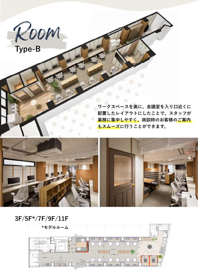 不特定多数の来客が多く、セキュリティーに気を遣う企業向けのレイアウト。