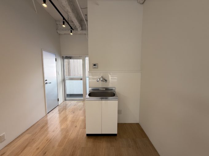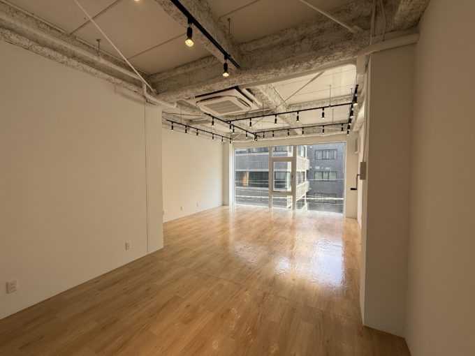 白い天井のスケルトンにフローリングの木材が際立つ物件!