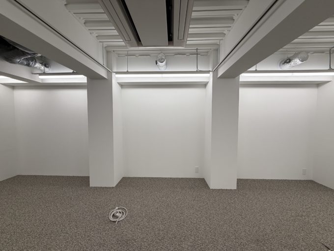 床はタイルカーペットですが、天井はスケルトン、壁は白塗装で清潔感のある落ち着いている雰囲気。