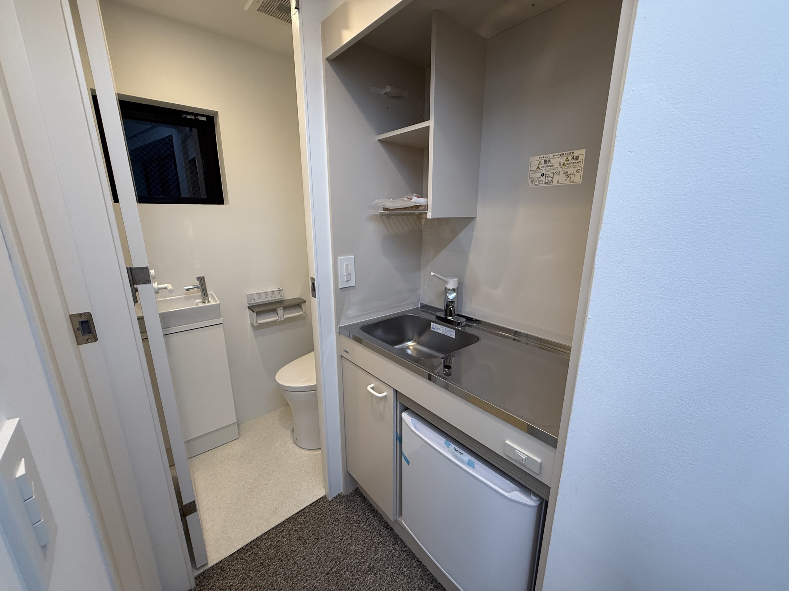小さめのキッチンとトイレは二つあり、オフィスとしては申し分ない水回りです。