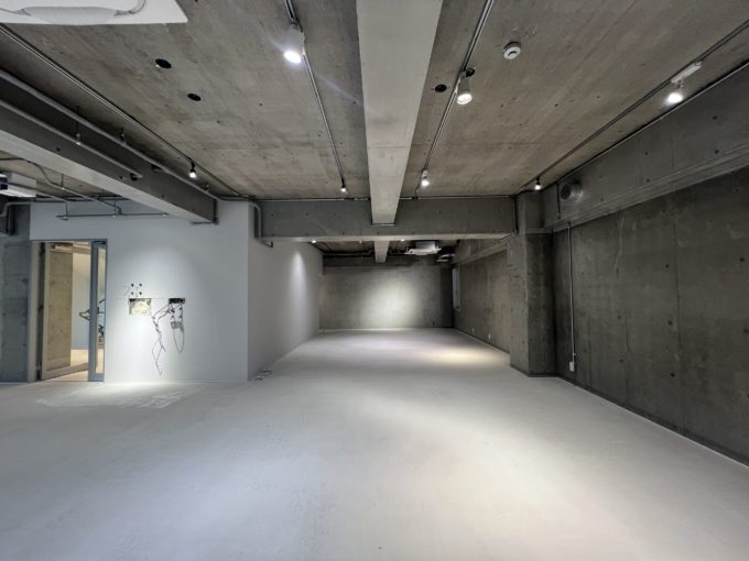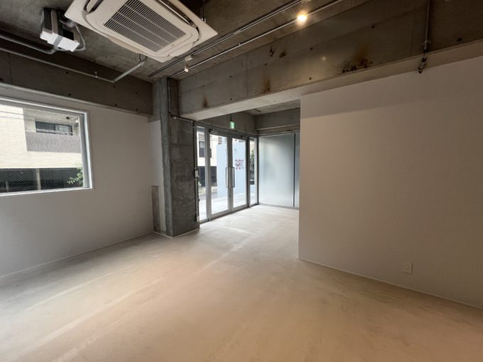 この建物はB1F〜3F+屋上の4層構成。1フロア1テナントで、どの区画もスケルトンに近いシンプルな仕上げです。